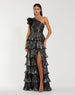 Dark Gray Pleated Metallic Ruffled One Shoulder Gown