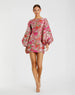 Embrace sophistication and romance in this colorful brocade mini dress, featuring a vibrant floral design and dramatic balloon sleeves, perfect for garden parties, elegant lunches, or chic date nights.
